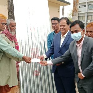 বালিয়াডাঙ্গীতে অগ্নিকাণ্ডে ঘর-বাড়ি পুড়ে যাওয়া অসহায়দের মাঝে ঢেউটিন ও চেক বিতরণ