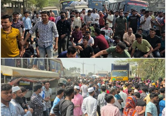 রূপগঞ্জে বকেয়া বেতন পরিশোধের দাবিতে শ্রমিকদের সড়ক অবরোধ, ঢাকা-সিলেট মহাসড়ক বন্ধ
